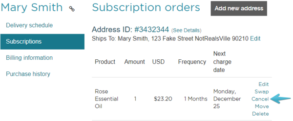 In order to cancel your subscription, you will first need to log in to your account. Click the Subscriptions tab, then next to each of the products you are subscribed to is a Cancel button. You would use this if you would like to no longer receive this subscription product.